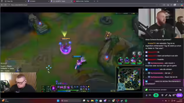 02:40:35Es wird Bezug auf eine TikTok-Storyline genommen, um die Frage nach dem Aussehen des Gesichts zu beantworten. Es wird angedeutet, dass man kurz vor der Insolvenz stehe und von Nicoletta rausgeworfen wurde. Nach einer Bitte um eine zweite Chance sehe man nun die Abneigung gegen TikTok-User. Es wird ein 7-0 Rengar erwähnt und die Frage aufgeworfen, ob man sich zu Wort melden dürfe. Es wird ein Kommentar über die Musch gemacht. Es wird überlegt, wie man ins Spiel kommt und festgestellt, dass der Rengar solo den Atakan startet. Es wird sich gefragt, warum man Anti-Heal hat und festgestellt, dass man der Einzige damit ist. Es wird kritisiert, dass man falsch gepickt wurde. Es wird festgestellt, dass Samira und Braum die Ulti blocken können, was ärgerlich ist. Es wird überlegt, wen man rausnehmen soll und festgestellt, dass es immer wichtig ist, den Rengar zu töten. Die Ori entwickelt sich langsam zu einem Garados. Es wird festgestellt, dass die Gegner trappen und keine Vision haben. Es wird die Frage aufgeworfen, was Fresh da den Nasus anpult. Es wird festgestellt, dass die Hates nicht mehr rollen. Es wird auf die Möglichkeit des Endens hingewiesen, wenn man den Barrel Buff hat. Es wird festgestellt, dass man die Waves nicht geklärt bekommt und nichts dagegen tun kann. Es wird festgestellt, dass man nie wieder Ori gegen Braum und Samira spielen wird.