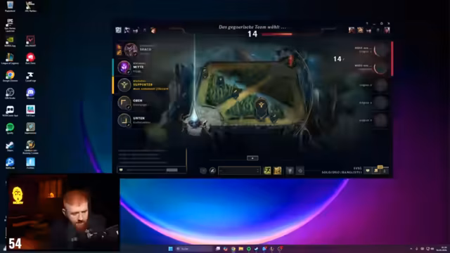 01:44:56Während eines Live-Spiels von League of Legends kommentiert der Streamer seinen Spielstil und den seines Mitspielers Timur kritisch. Er analysiert die Spielzüge, stellt strategische Fehler fest und diskutiert Elo-Ränge, wobei er sich selbst als in der Platin-Range befindend sieht. Der Fokus liegt auf der Performance und der Verbesserung des Spiels.