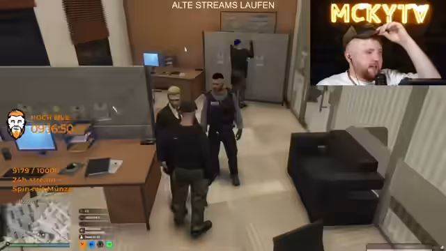 16:22:24Es wird über die Aufteilung der erhaltenen Bestechungsgelder gesprochen. Der Streamer plant, mit einem anderen Charakter ins Kino zu gehen, um den neuen James Bond Film zu sehen und Nachos und Popcorn zu teilen. Es wird über die Qualität des Films und die Notwendigkeit, sich gesund zu ernähren, diskutiert. Später meldet sich ein neuer Charakter, Selam, zum Dienst und wird von den anderen Charakteren begrüßt. Es wird über die Kosten für einen Waffenschein und die Notwendigkeit neuer Druckerpatronen gesprochen. Am Ende werden neue Rekruten für die Bundeswehr angeworben und ein Geschenk in Form eines Biers und eines Wackelkopfs überreicht.