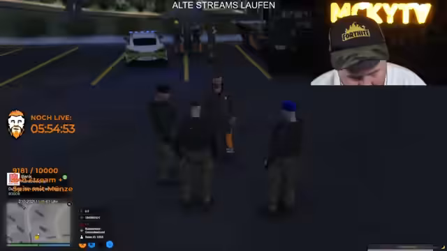 17:04:08Stenzen entschuldigt sich für sein Fehlverhalten, das in eine falsche Richtung ging. Er hat mit den Admins und dem Streamer persönlich gesprochen und Einsicht gezeigt. Er hofft auf Verzeihung und verspricht, dass so etwas nicht mehr vorkommt. Es wird kurz über eine bevorstehende Streifenfahrt gesprochen, die auf den nächsten Tag verschoben wird. Eine allgemeine Verkehrskontrolle wird durchgeführt, bei der ein Herr Mirasch angehalten wird. Es stellt sich heraus, dass es sich bei den Beamten um Herrn Hort, Generalleutnant der Bundeswehr, und einen weiteren Kollegen handelt. Sie erwähnen ein Gespräch mit Herrn Broth bezüglich eines Plans und der Zusammenarbeit mit der Bundeswehr.