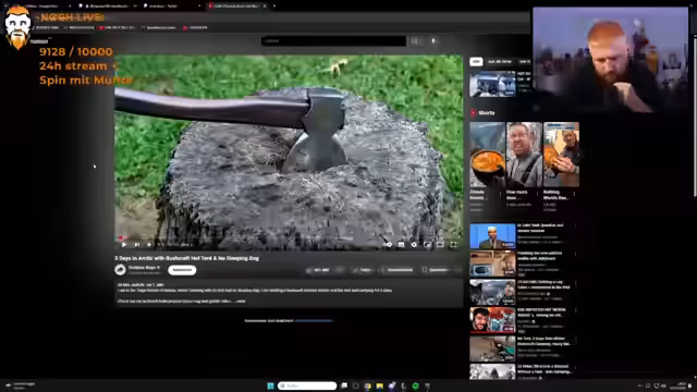 00:22:45Der Streamer kommentiert die Survival-Aktionen aus dem eingeblendeten Video und vergleicht sie mit eigenen Erfahrungen, die er mit einer Gruppe in Finnland und Lappland gemacht hat. Er betont, wie anstrengend es ist, in der Kälte Feuerholz zu beschaffen. Er erwähnt, dass er 371 Stunden im Monat gestreamt hat, was er als 'geisteskrank perverse Zahl' bezeichnet. Auf die Frage, was nach dem Streaming-Marathon passiert, antwortet er, dass es ganz normal weitergeht. Er überlegt, in einem Restaurant mehrere Vor- und Hauptspeisen sowie Nachspeisen zu bestellen, um sich durchzuprobieren und Empfehlungen geben zu können. RP-Projekte (GTA und Red Dead Redemption) stehen ebenfalls auf der Liste.