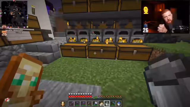 01:38:11Micky erklärt die Reparatur einer speziellen Schaufel mithilfe einer Amadello-XP-Farm, die als Heilsystem für beschädigte Gegenstände dient. Der Prozess umfasst mehrere Schritte: Das Kaputte in die Offhand nehmen, ein Holzschwert in der Mainhand halten, einen Wurftrank des Befalls in die Mitte der Farm werfen und die Schaufel anschließend reparieren. Dabei kommt es zu Komplikationen, als versehentlich mit Kuh getanzt wird, was den Trank ungültig macht. Nach einer Neuzubereitung des Tranks gelingt die Reparatur schließlich. Die Schaufel wird aufgewertet, was 37 Erfahrungsstufen generiert, und Micky erklärt, dass dies ermöglicht, selbst Fische zu fangen.