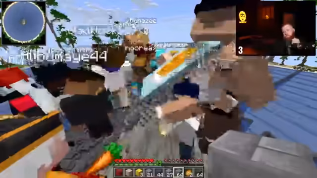 00:29:51Die Teilnehmer werden teleportiert und starten nackt in die Runde. Es folgen Taktikabsprachen, z.B. das Verstecken oder das Plündern von Kisten. Ein Spieler (Noreax) agiert als 'Loot-Lama' und darf nicht angegriffen werden. Nachfinalen Regeln: Kein Teaming, der letzte Überlebende gewinnt. Der Start verzögert sich leicht aufgrund technischer Probleme von Knossi, aber das Event beginnt schließlich.