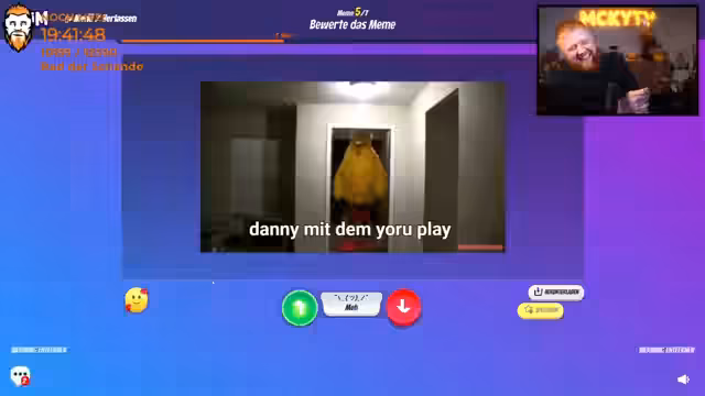 05:22:26Die Runde beginnt und die Teilnehmer bewerten die Memes der anderen. Es entstehen lustige und teils respektlose Inhalte, die auf die Teilnehmer der Gruppe zugeschnitten sind. Der Streamer ist begeistert von der Kreativität und dem Humor, besonders als humorvolle und krasse Memes vorgestellt werden, die Lacher hervorrufen.
