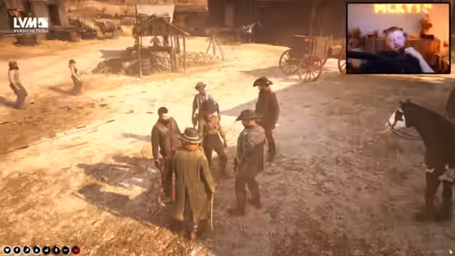 07:43:49Im Rahmen des Rollenspiels in Red Dead Redemption interagiert der Streamer mit anderen Spielern und schlüpft in die Rolle von Herr Rocks. Er tauscht sich über die aktuelle Lage auf dem Server aus, beschreibt die Überfüllung und die vielen 'Idioten' in Armadillo und plant Aktionen mit seinen Verbündeten. Die Gespräche sind geprägt von einem realistischen, chaotischen Western-Flair, in dem der Handel und die Beziehungen zwischen den Charakteren im Vordergrund stehen.