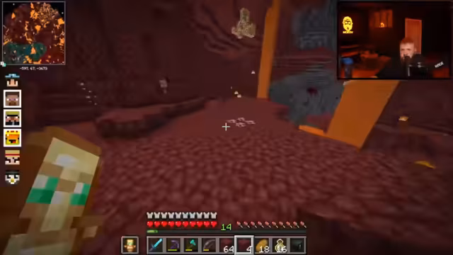 12:33:53Nach Zusammenschluss mit Fabo und anderen Zuschauern erkundet das Team weiter den Nether (ca. 3.000 Meter vom Dorf entfernt). Sie kämpfen gegen Schweine und finden viel Gold. Das Hauptziel bleibt die Suche nach dem Netherite-Template in den Kisten der Bastion. Der Streamer betont die Bedeutung des selbständigen Findens statt externer Hilfe und bleibt trotz Hindernissen wie Seelensand motiviert.