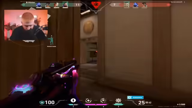 09:41:11Die Rückkehr zum Spielgeschehen bringt die bereits angespannte Stimmung zum Kochen. Der Streamer kritisiert das Teamplay und die Leistung seiner Mitspieler scharf, insbesondere die Wahl von Waffen wie dem Sheriff, was zu wiederholtem Ärger führt. Die Beschimpfungen, welche unter anderem als rassistisch interpretiert werden können, halten an. Das Spiel gegen ein französisches Team führt zu einem Overtime-Sieg, was zwar positiv bewertet wird, aber die unter der Oberfläche brodelnde Wut gegen das Team nicht beendet.