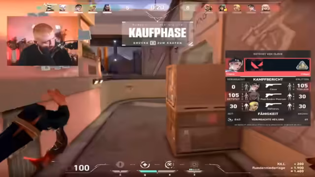 05:18:41Der Stream startet mit einem ununterbrochenen Valorant-Gameplay, ohne erkennbare Pausen oder Themenwechsel. Der Fokus liegt auf der Partie selbst, inklusive der eigenen Leistung und der des Teams. Kommentare wie 'Bei Eli geht es ab' und 'Was gab es heute zu essen bei dir?' deuten auf einen lockeren, von Gaming und Alltag geprägten Rhythmus hin. Der Slang ist sehr umgangssprachlich, mit Ausdrücken wie 'Panne ist toll' und 'Binaculada ist als würdest du Milch trinken', was die informelle Atmosphäre des Streams zeigt.