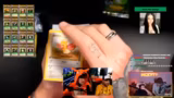 04:20:24Zu Beginn des Streams werden die verbleibenden Packs und Holokarten gezählt. Es sind noch elf Packs vorhanden, in denen sich sechs Holokarten befinden. Spendi zieht eine wertvolle Hologrammkarte, was große Begeisterung auslöst, da dies ein dicker Hit wäre. Yushi hingegen zieht eine Karte, die als eher schwach angesehen wird, was zu Enttäuschung führt. Die Streamer diskutieren über die verbleibenden Pack-Chancen und die Wahrscheinlichkeit, eine weitere Hologrammkarte zu ziehen.