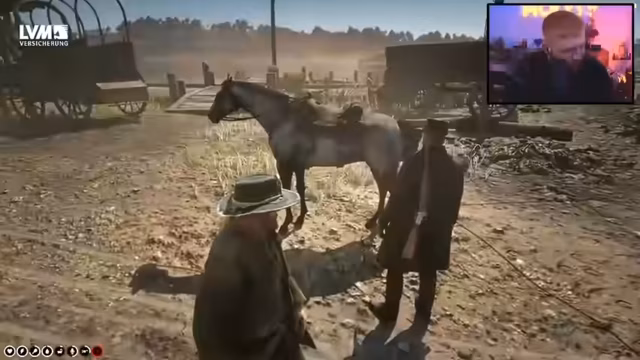 01:36:42Der Streamer reist mit anderen Charakteren nach Ennisburg, einer Minenstadt. Während der Reise kommt es zu skurrilen Gesprächen über sexuelle Anspielungen und den Humor des Streamers. Ein Charakter namens Sauer stellt seine Schwester vor, von der gemutmaßt wird, dass sie eine "Arschgeburt" ist. Der Streamer und die anderen Charaktere diskutieren über die Möglichkeit, dass sie nicht vorne, sondern hinten geboren wurde. In Ennisburg angekommen, werden sie von einem Barkeeper begrüßt, der ihnen Getränke und Speisen anbietet. Es kommt zu weiteren Missverständnissen und Übersetzungen von Dialektausdrücken. Der Streamer trifft auf alte Bekannte und es scheint, dass er in der Vergangenheit in Van Horn für Mord und Totschlag verantwortlich war.