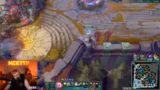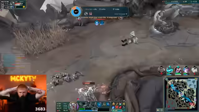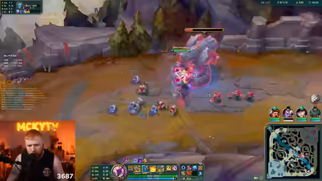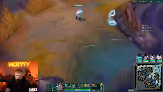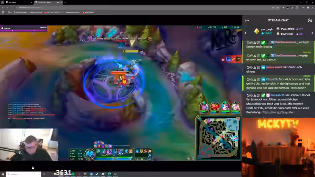 14:44:39Während des Spiels treten erneut technische Probleme auf, die den Stream beeinflussen. Der Streamer und seine Mitspieler stellen Laggs fest, die das Gameplay negativ beeinflussen. Gleichzeitig versucht er, trotz dieser Probleme und des gegnerischen Drucks, seine Lane zu kontrollieren. Sein Champion, Cho'Gath, wird als besonders stark bewertet, und er versucht, durch gutes Farmen und genaues Positionieren im Spiel zu bleiben, während er gleichzeitig den feindlichen Jäger (Jungler) beobachtet.