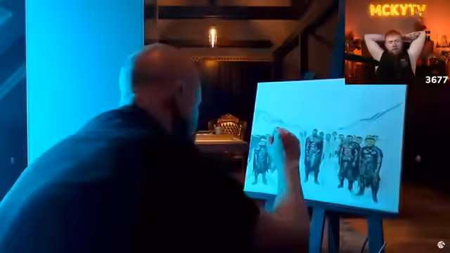 01:39:22Nach dem emotionalen Höhepunkt wird der Fokus auf einen kreativen Prozess verlagert. Der Streamer schildert seine Inspiration für ein neues Bildmotiv, das er aus seiner Reise nach Dubai mitgebracht hat. Es soll die biblische Geschichte von Moses und dem Pharao darstellen. Er erklärt seinen künstlerischen Ansatz, der freihändige Pinselstriche und eine sorgfältige Bildkomposition umfasst, um eine ästhetisch und emotional starke Wirkung zu erzielen, die Mut und Widerstandsfähigkeit symbolisieren soll.