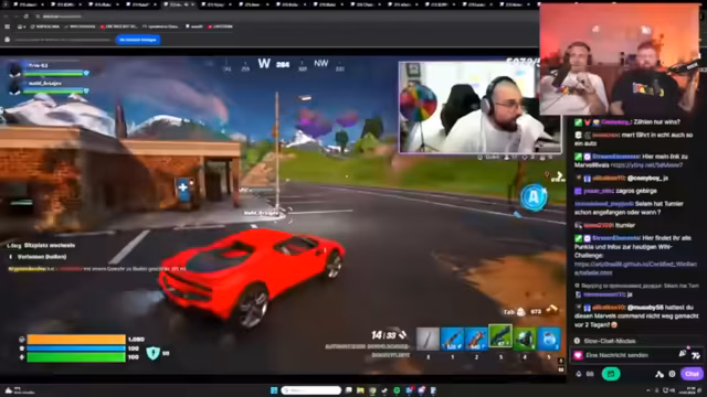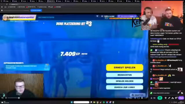 00:40:37Mit dem offiziellen Go startet das Turnier und die Teams gehen in die Spiele. Das Tempo ist hoch und die Moderatoren kommentieren die schnelllebigen Fortnite-Schlachten, Top-10-Situationen und strategische Züge. Einige Teams wie Camo & Sami und Respatz & Schradin holen schnell ihre Siege. Währenddessen wird auch für den eigenen Brand 'Certified Identity' geworben, dessen Drop für 19 Uhr angekündigt wird. Die Zuschauerzahlen steigen kontinuierlich und zeigen das große Interesse am Format.