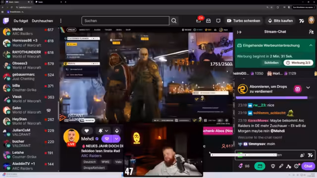 03:01:10Ein Zuschauer namens Osterhase hat das Recht, sich ein Horrorspiel zu wünschen. Streamer ruft auf, den Zuschauer zu kontaktieren, um seinen Wunsch zu erfragen. Es folgt ein Spendenaufruf für weitere Unterstützer, darunter G-Time, Adi, Rohatz und Panne. Die genauen Beträge der Spenden werden offenbar live berechnet und gesammelt. Ein arabisches Monopoly-Spiel als gemeinsame Runde wird als mögliche Aktivität vorgeschlagen.