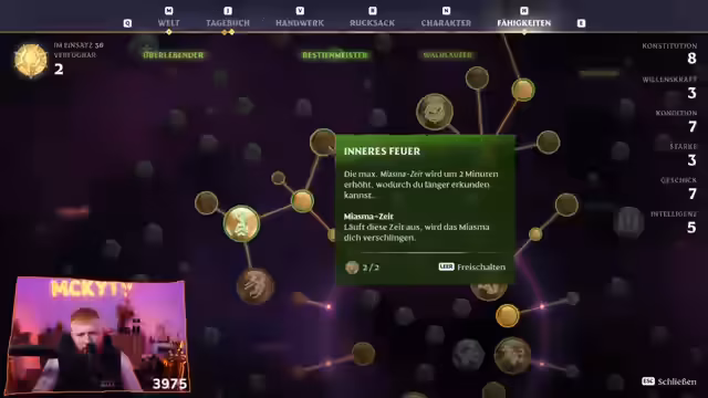 02:24:28Zu Beginn beschäftigt sich der Streamer mit technischen und spielinternen Problemen. Es gibt Schwierigkeiten bei der Herstellung von Pfeilen, speziell Kupferpfeile, die nach einem Update nicht mehr verfügbar sind. Er muss die Rezepte neu freischalten und Materialien wie Kupferbarren, Holzbretter und Holzkohle beschaffen. Die Suche nach dem Schmied und die Lösung von Quests, wie der der Jägerin, stehen im Fokus, um weiter im Spiel voranzukommen.