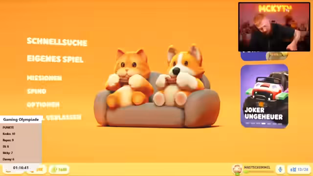 02:10:02Der Streamer stellt das Konzept der Gaming Olympiade vor. Der Anlass war ein Video von Eli, in dem Zuschauer eine solche Veranstaltung mit 'echten Gamern' gewünscht hatten. Es geht um 'Gamer Stolz' und die Lust, sich in verschiedenen Spielen zu messen. Die Teilnehmer sind motiviert und versprechen, ihr Bestes zu geben, auch wenn der Druck durch die Geldwetten und die Präsentation für den letzten Platz groß ist.