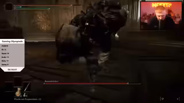 01:44:49Die endgültige Liste der Spiele steht fest. Die Challenge über zwei Tage soll die unterschiedlichen Stärken der Teilnehmer sichtbar machen. Bei einigen Spielen, wie Pummel Party und Mario Kart, werden mehrere Runden gespielt, um Glücksfaktoren auszugleichen und die spielerische Qualität zu messen. Die Zeitnahme bei Elden Ring Bosskämpfen und Punktesysteme in anderen Spielen sollen den besten Gamer ermitteln.