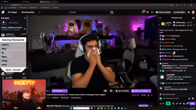 01:50:29Zunächst diskutiert die Runde über eine Gamer-Tierliste, wobei die Teilnehmer ihre eigenen Stärken in Spielen wie Diablo und World of Warcraft sehen. Sie entscheiden, für die Olympiade eher weniger bekannte Spiele zu wählen, um Stream-Sniping zu vermeiden und den Fokus auf den Wettbewerb zu legen. Der Vorschlag, Call of Duty Black Ops zu spielen, wird angesprochen, ebenso die Herausforderung, bei Spielen mit wenigen Spielern nicht ständig gesniped zu werden.