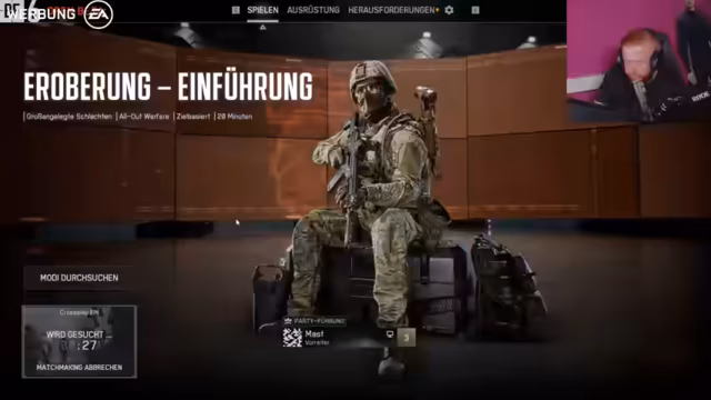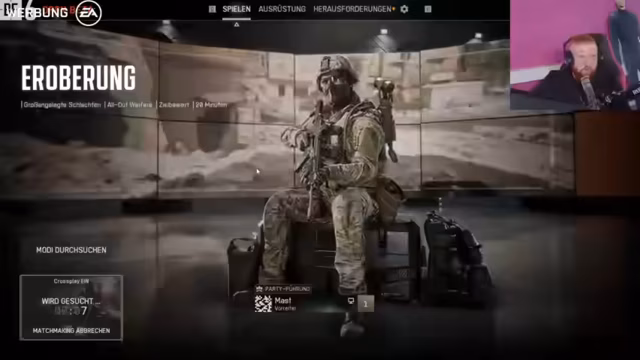 01:46:26Der Streamer spricht über die Challenge im Spiel „Valo“ (vermutlich Valorant), bei der ein „Back-to-Back“-Erfolg nicht gelang. Er kritisiert das Spiel und äußert Frustration über die不成比例e Leistung. Der Fokus wechselt dann zur Battlefield 6 Open Beta. Eine Challenge wird gestartet: Innerhalb von zwei Stunden müssen 42 Flaggen in Capture the Flag erobert, 200 Kills erzielt und 15 Sektoren in Eroberungsmodes eingenommen werden. Dies soll nach dem Placement geschehen, gefolgt von einer weiteren Stunde in einem Spiel namens Superwife.