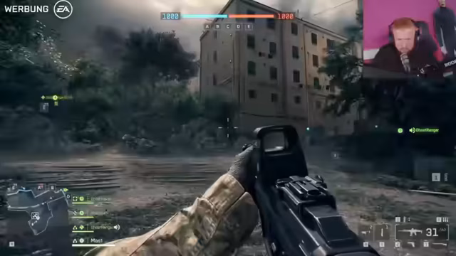 04:02:12Der Streamer wechselt zu Battlefield 6 und versucht, ein Team für den Battle-Royale-Modus zu organisieren. Er beschreibt das Gameplay als chaotisch und frustrierend, da er vom restlichen Team getrennt wird und in einem Hinterhalt stirbt. Der Fokus liegt darauf, zusammenzubleiben, um die feindlichen NPCs und anderen Spieler zu überstehen.