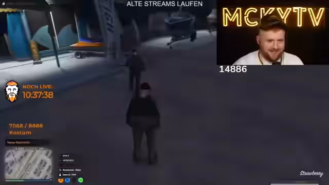 12:57:19Der Streamer wechselt das Spiel zu Grand Theft Auto Roleplay (GTA-RP) und schlüpft in die Rolle eines Polizisten namens Hort. Er gerät in eine chaotische Situation, in der er versucht, einen Kollegen namens Herrn Holgeren zu finden, der einem maskierten Mann im Casino begegnet ist. Die Gespräche sind geprägt von absurden Dialogen, technischen Problemen mit dem Funkgerät und der Jagd nach einem Spiegel.