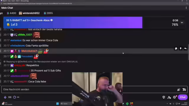 03:50:14Sascha trifft ein und wird begrüßt, während der Streamer erklärt, dass der Stream diesmal pünktlich um 20 Uhr beginnt. Es wird spekuliert, dass Ryrex durch Spenden seine Miete finanziert. Der Chat wird gefragt, welche Cola bevorzugt wird. Es gibt Probleme mit PayPal, die das Versenden und Abbuchen von Geld verhindern. Ein Zuschauer namens JustVote wird identifiziert, nachdem er sich neu eingeloggt und seinen Namen geändert hat. Der Streamer scherzt über die T1-Subs und die verrückte Community. Es wird festgestellt, dass Jens Knossalla (Knossi) anwesend ist. Der Streamer verschüttet etwas und Sascha wird ermahnt, vorsichtig zu sein. Es wird über die Verletzungen im Gesicht des Streamers gesprochen, die von einem harten Sparring stammen. Sascha vergleicht die Situation mit einer League-of-Legends-Partie und fragt nach dem Rang des Streamers. Es wird ein Team für das Spiel gebildet, bestehend aus Krokodil, Willi und Knossi, das als moderne Milchschnitte bezeichnet wird.