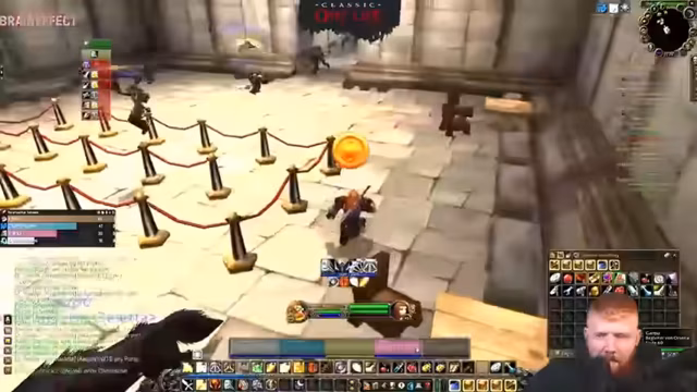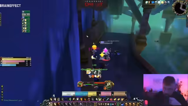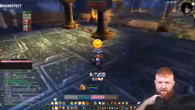 10:47:40Im weiteren Verlauf des Dungeons kämpft die Gruppe gegen mehrere Bosse. Ein Paladin namens Ubi gerät in Not, als er Aggro bekommt und der Streamer ihn schilden muss. Es kommt zu einem kritischen Mana-Problem bei dem Streamer, da er seine Ressourcen dafür aufwendet, Ubi am Leben zu halten, und seine eigenen Manatrunke verbraucht hat. Trotzdem gelingt es der Gruppe, die Situation zu überstehen und einen blauen Ring zu looten, über den sie fair würfeln wollen.