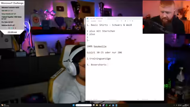 08:41:33Der Fokus liegt weiterhin auf der Münze-Challenge. Dabei wird ein starker Teamgeist betont, bei dem sich die Teilnehmer gegenseitig unterstützen und motivieren. Es gibt Rufe nach der Münze, um weitermachen zu können. Parallel dazu wird der Stream durch Werbung unterbrochen, die als störend empfunden wird. Der Streamer spricht über Ernährung und Supplements, die von Fachleuten überprüft werden, was seine Leistung beeinflusst.