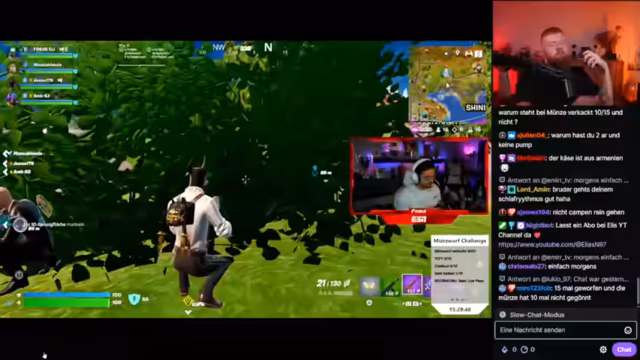 04:05:11Die Teilnehmer diskutieren intensiv über dieChallenge-Strategie und die Rolle des Glücks bei der Münze. Es wird mehrfach die Frage gestellt, was bei Sieg oder Niederlage der Münze getan werden soll. Die Gruppe entscheidet sich, bei Misserfolg der Münze den Versuch an einem anderen Ort zu wiederholen. Der Streamer betont die Wichtigkeit der Konzentration und kritisiert den "Lacher"-Charakter mancher Challenges, da diese zu asozialem Sprachgebrauch und mangelnder Ernsthaftigkeit führen.