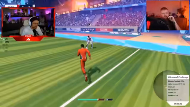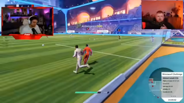 09:54:33Zu Beginn des Streams wird intensiv ein virtuelles Boxspiel gespielt. Streamer geben sich gegenseitig taktische Anweisungen, wie man den Ball ins Tor schießen und sich verteidigen soll, wobei es zu Verwirrung über die Steuerung kommt. Spieler wie Maus und Mert werden explizit geraten, nicht wie bei FIFA zu dribbeln, sondern sich auf Positionsspiele und Schüsse zu konzentrieren. Der Ton ist hochenergetisch und充满了 direkte Aufforderungen und Rufe, die den Fokus auf das Teamspiel und die schnellstmögliche Zielaufnahme legen.