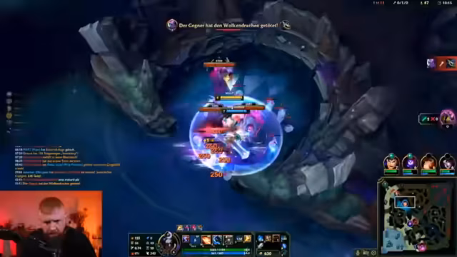 13:55:06Nach dem anfänglichen Erfolg richtet sich der Fokus auf die Lane-Phase und Vorbereitung für Objektive wie den Drachen. Der Streamer analysiert die gegnerische Komposition, besonders die Rüstung der Gegner, und fordert den Chat auf, Verbesserungen vorzuschlagen. Die Kommunikation ist zentral, er ruft wiederholt auf, zu kommen und zu helfen, während das Team versucht, sich mit den Elementaren zu resetten und eine konfliktfreie Farm-Phase zu erreichen.