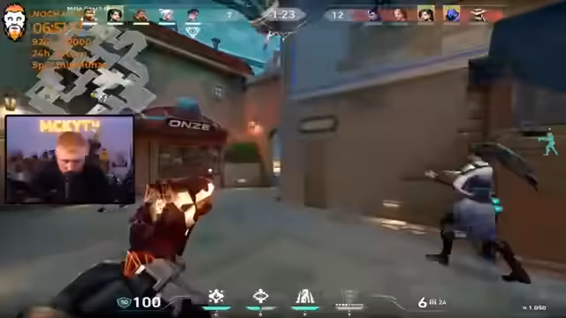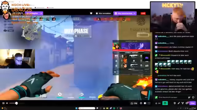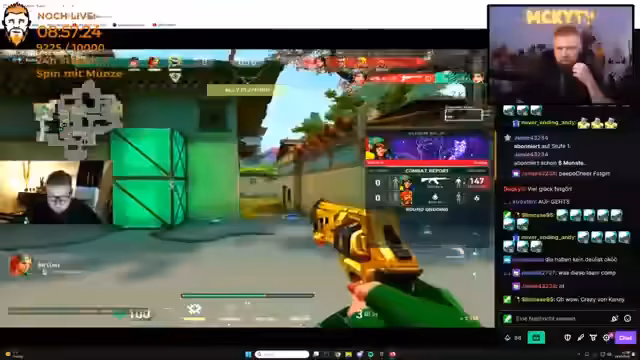 09:06:33Der Streamer befindet sich mitten im intensiven Gameplay von VALORANT. Er kommuniziert aktiv mit seinem Team über Strategien, Positionen und taktische Züge. Es geht um das Platzieren von Rauchbomben, das Halten von Linien und das koordinierte Vorgehen in verschiedenen Spielzonen. Der Streamer zeigt Frustration über seine eigene Leistung im Vergleich zum Gegner, der als überlegen beschrieben wird, während sein Teammate Medi für gute Leistung gelobt wird. Es werden längere Gesprächspausen über Spielmechaniken und gegnerische Verhaltensweisen eingeschoben.