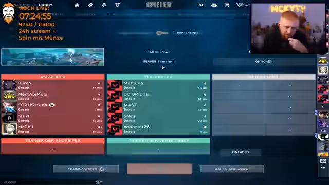 03:33:30Das Team startet in das Turnier, wobei der Streamer die Atmosphäre als aufgeregt und intensiv beschreibt. Es werden die Lobby-Einstellungen überprüft und das Team stimmt auf ein koordiniertes Vorgehen ein. Der Streamer legt Wert auf eine klare Kommunikation und das gemeinsame Vorgehen als Einheit. Die Wahl der Startseite (Attacker oder Defender) wird diskutiert, wobei die Taktik für die Map Icebox bereits im Vorfeld geplant wird.