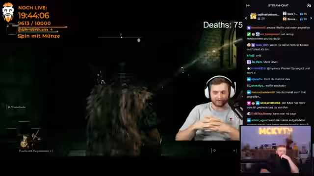 18:46:16Der Streamer interagiert stark mit seiner Community während des Spielverlaufs. Er erreicht 8000 Zuschauer in der Nacht. Es werden Spielmechaniken wie das Erkunden von Feindpositionen, das Nutzen von Werkbänken und das Improvisieren von Upgrades für Waffen gezeigt. Besonderes Augenmerk liegt auf dem taktischen Vorgehen gegenüber Soldaten. Der Stream betont die Bedeutung des Streams für die Community und ermutigt, die Stream offen zu lassen.
