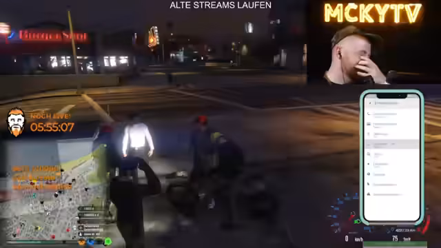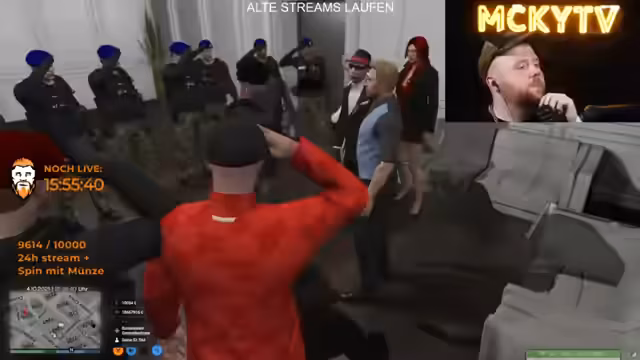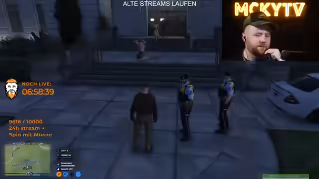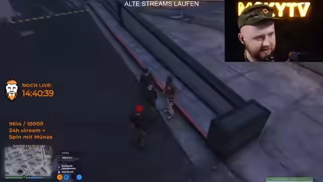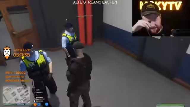 16:43:16Der Stream startet mit einem Einsatzgespräch zwischen Polizisten und Horst. Es gibt Unklarheiten über die Befehle von Herrn Trost. Einsatzleiter wird kritisiert, da Anweisungen nicht klar kommuniziert werden. Horst ist krank und zivil unterwegs, gibt dennoch der Polizei Anweisungen. Die Situation eskaliert, als maskierte Täter mit einem Schützen auf dem Dach auftauchen und die Verfolungsabbruch anordnen, um Tote zu vermeiden.