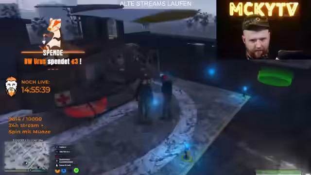 14:03:17Der Streamer beschreibt die Inspektion eines Helikopters und bemängelt den Zustand des Cockpits. Es werden Mängel wie ein muffiger Geruch und Verunreinigungen festgestellt, die beseitigt werden müssen. Nach einer gründlichen Reinigung werden Probleme mit dem Helikopter wieder deutlich, als dieser nicht mehr startet. Der Streamer entscheidet sich, zu Fuß weiterzugehen und wird dabei von seinem Assistenten begleitet. Nach einigem Suchen erreichen sie das Ziel.