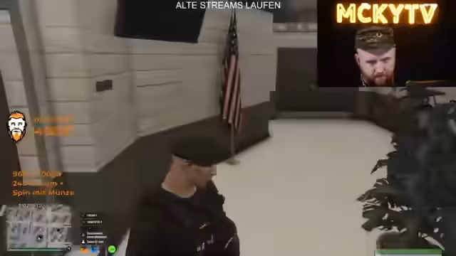 15:56:02Ein neuer Rekrut möchte zur Bundeswehr und nach einer gründlichen Prüfung (Strafregister) wird ihm ein Praktikum angeboten. Der Streamer betont die Wichtigkeit von Loyalität und sagen 'Ich kenne den Sepp Mayer. nehmen Sie ihn'. Auch ein Geschäftsmann (Mr. Bitcoin) kommt hinzu und möchte Informationen austauschen. Es werden Pläne für einen Nachtclub besprochen und alternative Immobilien erwähnt. Szene zeigt die Rekrutierungsprozesse im Spiel.