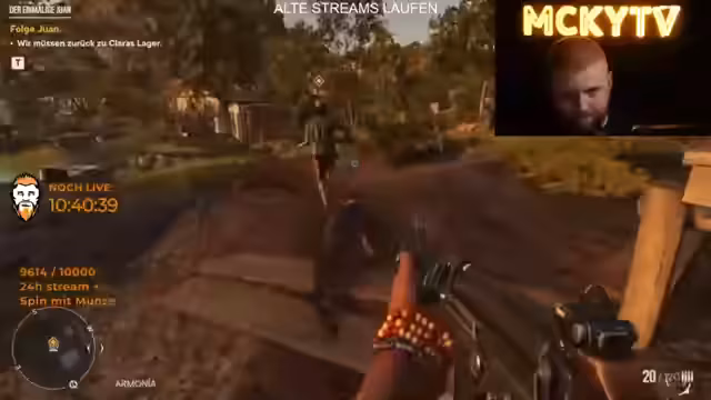 17:33:49Es wird die Entscheidung getroffen, Far Cry 6 im Story-Modus zu spielen, der als zugänglicher für alle Spielstärken beschrieben wird, im Gegensatz zum Action-Modus. Es folgt eine Ingame-Sequenz, die die politische Situation in Yara und die Rolle des Diktators Castillo beleuchtet. Der Charakter Dani wird eingeführt und es wird die Möglichkeit zur Charakterauswahl (männlich/weiblich) erwähnt. Die deutsche Synchronisation, insbesondere die Stimme von Denver aus "Haus des Geldes", wird positiv hervorgehoben. Nach einer anfänglichen Fluchtsequenz und der Einführung wichtiger Charaktere wird das Spiel kurz neu gestartet, um die Helligkeit anzupassen. Es wird ein neues Grafiktreiber-Update für das Spiel erwähnt, und der Vorteil eines Streaming-PCs für solche Neustarts betont. Die Story soll im Stream durchgespielt werden. Es wird die neue Zentrale gezeigt. Nach dem Neustart des Spiels werden die Grafikeinstellungen angepasst.