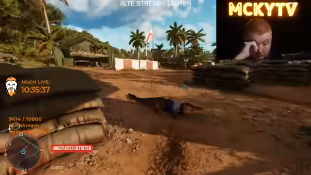 19:05:49Der Streamer befindet sich auf einer Mission in Yara, wo er zusammen mit Dani versucht, die Insel aus dem Griff von Castillos Armee zu befreien. Sie erhalten feuerschützende Ausrüstung und planen, ihre Aktionen mit einem Lied zu begleiten, das erinnert an Lita und Libertad. Sie treffen auf Widerstand und werden in einen Kampf verwickelt, bei dem sie eine Granate einsetzen und einen Gegner ausschalten.
