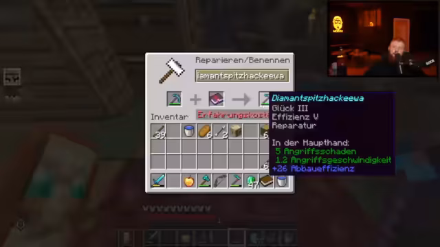 05:08:53G-Time und Micky konzentrieren sich darauf, einen strategisch wichtigen 'Outpost' zu errichten. Dafür benötigen sie spezielle Verzauberungen wie 'Glück 3' für Spitzhacken und Bögen. Sie handeln mit Villagern, um die benötigten Bücher zu erhalten, was eine Geduldsprobe darstellt. Nach erfolgreichem Handel begeben sie sich sofort auf die Jagd nach Diamanten, um die Ausrüstung zu vervollständigen.