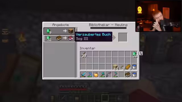 08:55:46Der Streamer und seine Teammitglieder starten den Raid, werden jedoch durch die unkoordinierte Aktion und das plötzliche Erscheinen von Mitspielern aus dem FitnerCraft-Universum unterbrochen. Währenddessen haben seine Villager im Dorf aufgehört zu handeln, was ihn extrem frustriert. Er beschreibt die Villager als sture Bastarde, die nichts abgeben, und sieht sich gezwungen, seine Rüstung selbst zu verzaubern, anstatt auf den Erfolg des Raids zu warten, der alles günstiger machen sollte.