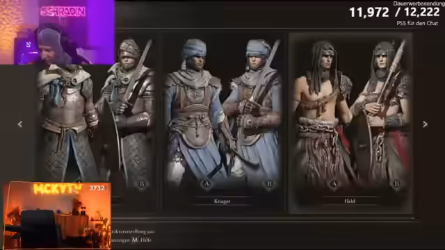 08:18:44Es gibt eine große Ankündigung für einen Community-Event: Ein Elden Ring Stream wird für 19 Uhr geplant. Dabei wird der Streamer zusammen mit einem Pro-Spieler, 'der Unterstrich Cyberpunk', spielen. Der Charakter wird live durch Abstimmung im Chat bestimmt, wobei 'Held' und 'Samurai' die populärsten Optionen sind. Der Streamer beschreibt dies als einen historischen Moment für seine Community und fordert die Zuschauer auf, live dabei zu sein und den Stream zu unterstützen.
