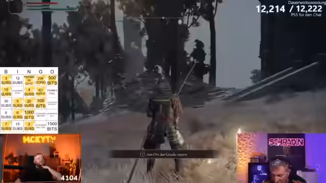 11:57:00Um die Community einzubeziehen, wird ein 'Bingo'-Spiel für den Chat eingeführt. Teilnehmer sollen Aktionen wie Spenden oder bestimmte Chat-Eingaben vornehmen, um Felder im Bingo-Karten-Overlay zu füllen. Der Streamer klärt, dass er nicht mit 'verpisten' Aschen spielt, sondern mit Hilfsgeistern, die als legitime Unterstützung gelten. Das Bingo soll die Interaktion steigern und ein gemeinsames Ziel während des Streams schaffen. Der Streamer betont, dass es ein lustiges Element sei und keine unfairen Vorteile biete.