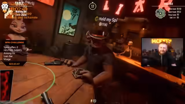 06:45:28Im Stream werden verschiedene Runden des Spiels 'Liars Deck' gespielt. Der Streamer und seine Gegner erleben packende Momente voller Mindgames, Bluffs und unerwartete Wendungen. Es werden verschiedene Spielmodi wie 'Chaos-Modus' und 'King's Table' ausprobiert, bei denen Taktiken und Lügen eine zentrale Rolle spielen. Die Spannung steigt als die Spieler versuchen, einander auszutricksen und ihre Karten strategisch einzusetzen.