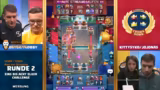 14:44:36Micky und Lunari stehen im Finale gegen Jonas und Kitty. Gleichzeitig findet ein Spiel um Platz 3 zwischen Morten und Flobby sowie Big Spin statt. Für das letzte Spiel namens 'Your Draft' dürfen die Verlierer Teams sechs Karten für ihre Gegner auswählen. Morten und Flobby erhalten Karten wie Wutzauber, Frostzauber, Klonzauber und Barbarenhütte. Das Spiel entwickelt sich zu einer spannenden Partie, bei der Morten und Flobby mit ihren Loon-Karten und Erdbeben-Spell versuchen, gegen die starke Verteidigung von Big Spin und Mick zu bestehen.