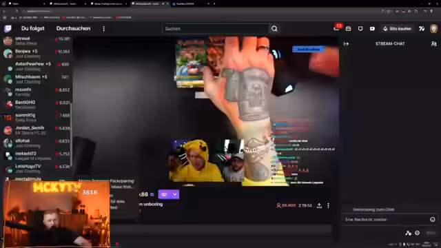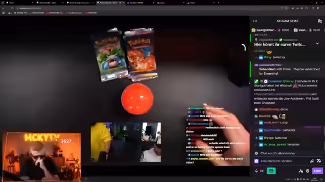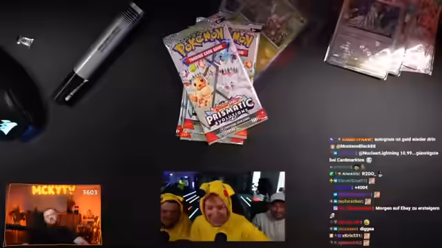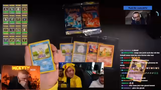 04:27:24Zabex bekommt ein Pack for free, weil er ein Freund und Gönnergy Partner ist. Ein Set wird an die Zuschauer im Stream verlost und ein Set gibt es bei Whatnot. Miki soll kurz bei WhatsApp schreiben, ob er möchte, dass zuerst Zabex' Pack oder seine Sets geöffnet werden. Es wird eine Münze geworfen, um zu entscheiden, wer zuerst dran ist. Bei Kopf nimmt man sie, bei Zahl gibt man an Zabex. Zabex ist zuerst dran. Es wird sich vorgestellt, dass Glurak gezogen wird und Micky am Arsch ist. Zabex bekommt das Pack für sich. Es wird Bisa gezogen, was als super bewertet wird. Es werden Pikachu und Wohlpix gezogen. Es wird gesagt, dass etwas hässlich aussieht und wie Carsten von der Seite. Es wird mehr Augen gefordert. Es wird kein Sound gewünscht. Es wird gefragt, ob es eine gute oder schlechte Entscheidung von Micky war. Es werden 2.000 Euro verlost, indem die Zahl 2.000 in den Chat geschrieben wird. Wenn man Amazon Prime Kunde ist, kann man einen Streamer monatlich kostenfrei subscriben. Es wird gesagt, dass es keinen Sinn macht, jetzt die nachgebobbenen Dings, die Subs, die Re-Subs zu machen. Es wird sich über die Pikachu-Outfits gefreut. Leonik123 gewinnt die 2.000 Euro. Miki hat zwei Pexer und es wird erst mit rechts angefangen. Es wird die Wasserenergie genommen, weil die ein Zeichen ist. Es werden Karten wie Fucano und Kadabra gezogen. Es wird gefragt, ob es jetzt richtig Mülltonne ist. Es wird gesagt, dass Quapsel ein Zeichen ist. Es wird gefragt, ob Micky bereit ist. Es wird runtergezählt. Es wird ein dickes F für Miggi in den Chat geschrieben. Es wird gesagt, dass hier jetzt der Glurak rauskommt. Es wird gesagt, dass es schwerer ist, eine Nicht-Holo zu treffen, als eine Holo. Es wird gesagt, dass in jedem Pack die Fotzenkarte ist. Es wird gehofft, dass auch der Jackpot kommt. Es wird Feuer gezogen, aber es war Volnona. Es wird gesagt, dass die jetzt für zwei Chats finden, einmal für WatMod und einmal für Monty's Chat. Das bedeutet 50-50, einer hat safe nur Hulu drin.