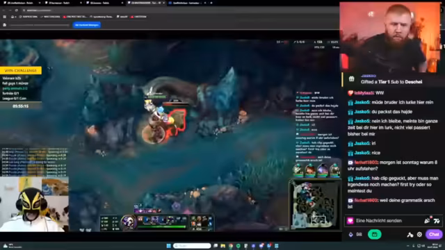05:08:26Der Streamer drückt seine tiefe Frustration über ein bestimmtes Spielmechanik aus, bei der ein Sieg in League of Legends durch das Aufwerfen einer Münze ungültig gemacht wurde, da er jedes Mal die falsche Seite gewählt hat. Dieses Missgeschick, das dreimal hintereinander geschah, wird von ihm als ungerecht und demoralisierend empfunden, da es seine Leistung konterkarierte und die Siegchancen signifikant reduzierte.