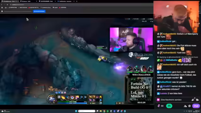 04:36:39Es kommt zur entscheidenden Münzwahl für den Streamer. Nach anfänglichem Zögern und intensiver Abstimmung mit dem Chat, wählt er Zahl. Kurz darauf wird sein League of Legends-Spiel beendet, und er verliert trotz starker Hand. Er reagiert emotional, indem er die 5%-Beteiligung seines Mitspielers Jens zurückzieht, und schlägt stattdessen eine Sonderregel vor: Wenn Jens sein nächstes League-Spiel gewinnt und die Münze trifft, erhält er eine Belohnung.