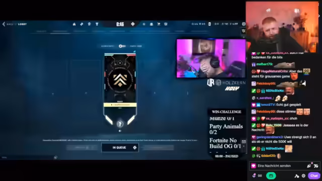 00:03:00Der Stream beginnt mit einer Begrüßung der Community, die als elitär beschrieben wird. Der Moderator kündigt ein Win-Race um 500 Euro mit vier Teilnehmern an: Uwe, Hanna, Jens und Rajo. Sie müssen eine Liste von Spielen – Valo (Back-to-Back), League of Legends (ein Win), Party Animals (zwei Wins), Fortnite (No-Build OG Win) und Valorant Fullgas mit Münze – so schnell wie möglich absolvieren. Das Rennformat und der Preis von 500 Euro für den Schnellsten werden vorgestellt.
