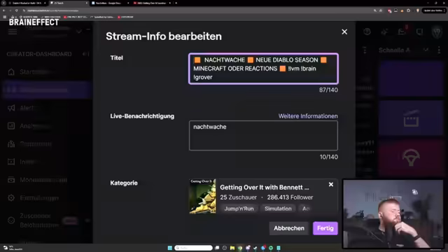 00:18:04Der Streamer äußert seine aktuelle Sucht nach Diablo und plant, verschiedene Spiele im Stream zu spielen. Dazu gehören unter anderem Smash Brothers, Zombie-Erfolge, Tekken 8, GTA RP, Horror-Games und Fortnite. Insbesondere wird das Ziel genannt, sehr forderende Spiele wie Jump King, Cuphead plus Münze und Malenia Hardcore in Elden Ring zu bewältigen.
